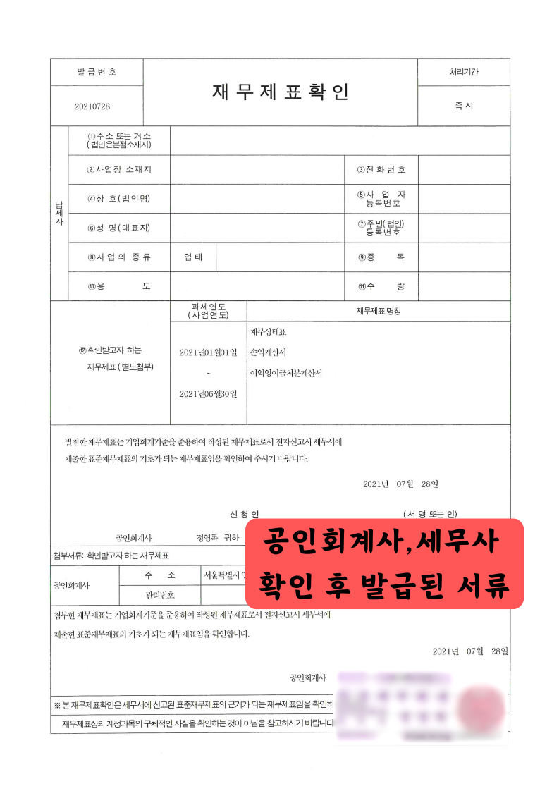 이는 단순한 재무제표증명원이 아니라 공인회계사 또는 세무사의 확인을 받아 발급되는 서류로